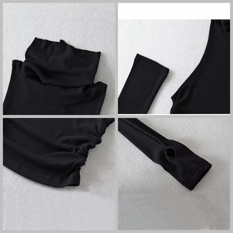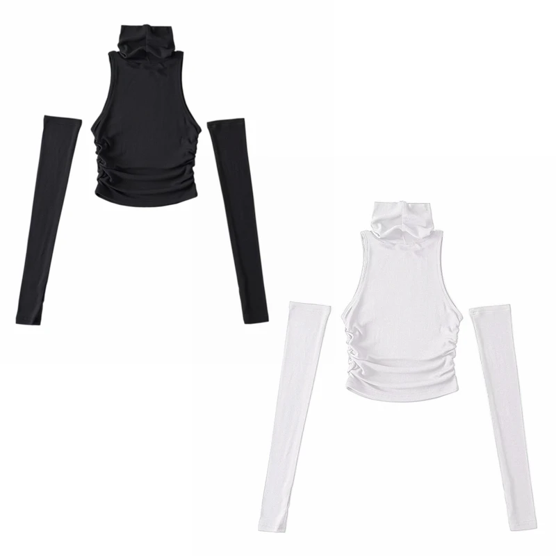 ↑Woman Clothes Fall 2025 Tank Top Sleeve Cover Sleevless Side Pleats Turtleneck T-shirt Sexy Ribbed Knitted Tops Y2k 2529 - TopDealBox