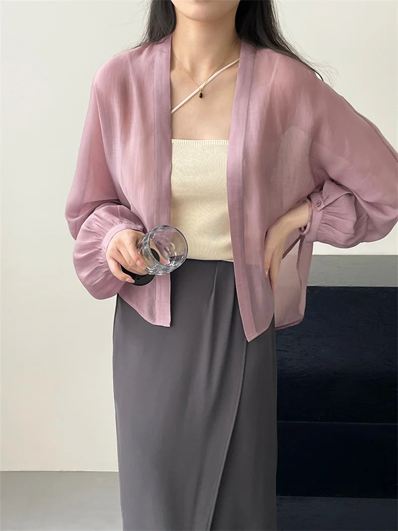 ↑Women New Spring Rayon Short Sunscreen Shirts Long Sleeve Lightweight Solid Cardigan For Women Coats Chic Outwear camisas shirts - TopDealBox