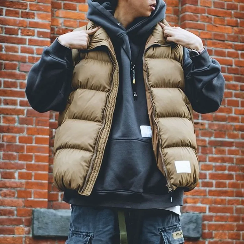↑Wtaps down Jaet ort Sle Stand Collar Men's Outdoor Functional Windproof Warm Color Vest Youth ular ey Du down - TopDealBox