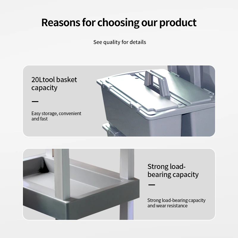 ↑YJ-01 Series Cleaning Cart Hotel Rooms Property Cart Linen Bag Cleaning Tools Multi Functional Hand Pushed Utility Cart - TopDealBox