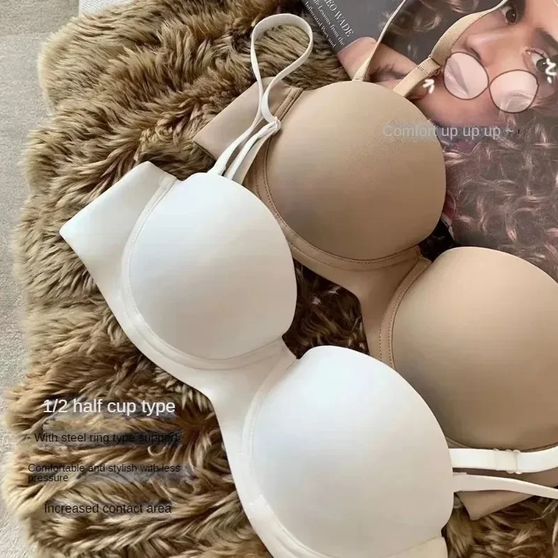 ↑Young Women's 1/2 Cup Underwire Sexy Bra Lingerie European and American Style Push-Up Smooth Seamless Bra - TopDealBox